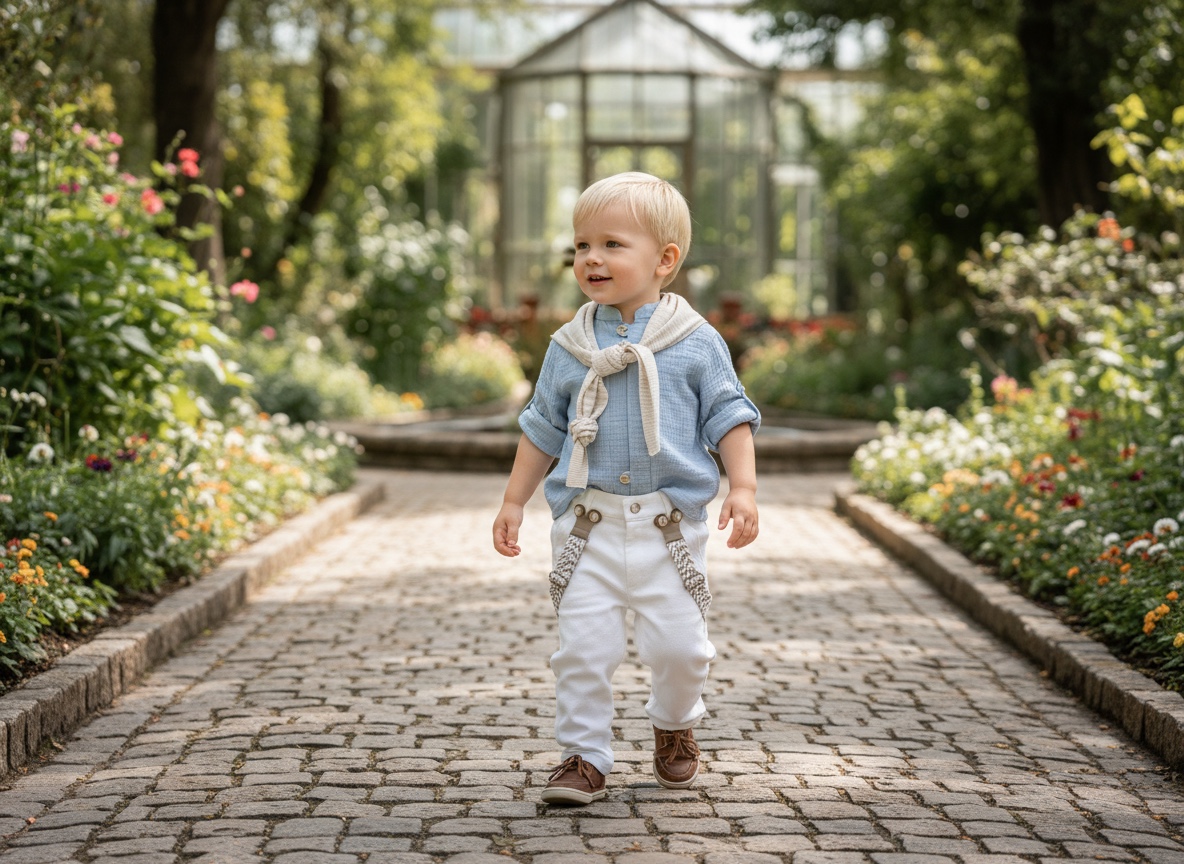 Ανάλαφρο βαπτιστικό σύνολο με ρομαντική και μοντέρνα διάθεση. Βαμβακερό πουκάμισο απαλής υφής. Παντελόνι από βαμβακερό ύφασμα με ελαφριά ελαστικότητα. Τιράντες που προσφέρουν σωστή εφαρμογή και στυλ. Ελαφρύ αξεσουάρ λαιμού που ολοκληρώνει την εμφάνιση.
