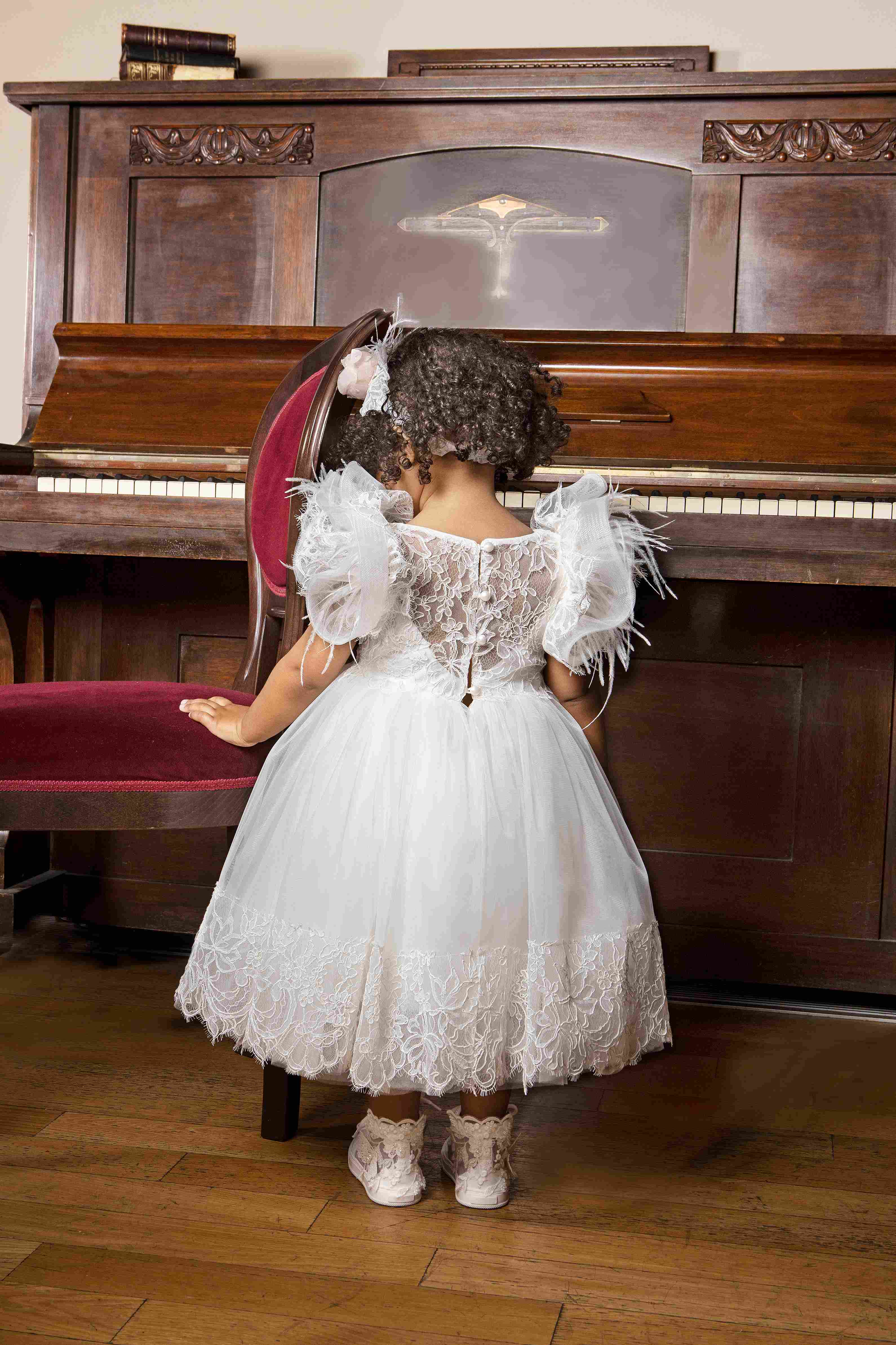 Ασύγκριτα μανίκια από τούλι και πούπουλα, που χαρίζουν αέρινη και παραμυθένια εμφάνιση.