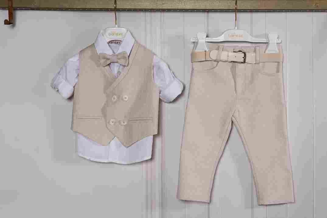Double-breasted beige cotton vest with subtle details for a sophisticated touch.