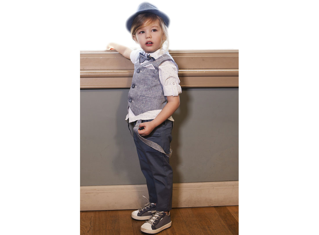 Μοντέρνο σύνολο από μοναδικής ποιότητας βαμβακερό λευκό πουκάμισο με μικροσχέδια σε σιέλ απόχρωση που συνδυάζεται μοναδικά με το βαμβακερό παντελόνι σε ραφ απόχρωση. Το σετ ολοκληρώνεται με το ασορτί γιλέκο με ραφ λεπτομέρειες απο λινό ύφασμα, και τον μικρό σας πρίγκιπα να απογειώνει την εμφάνιση του!