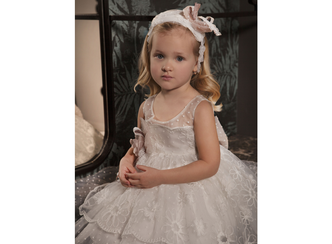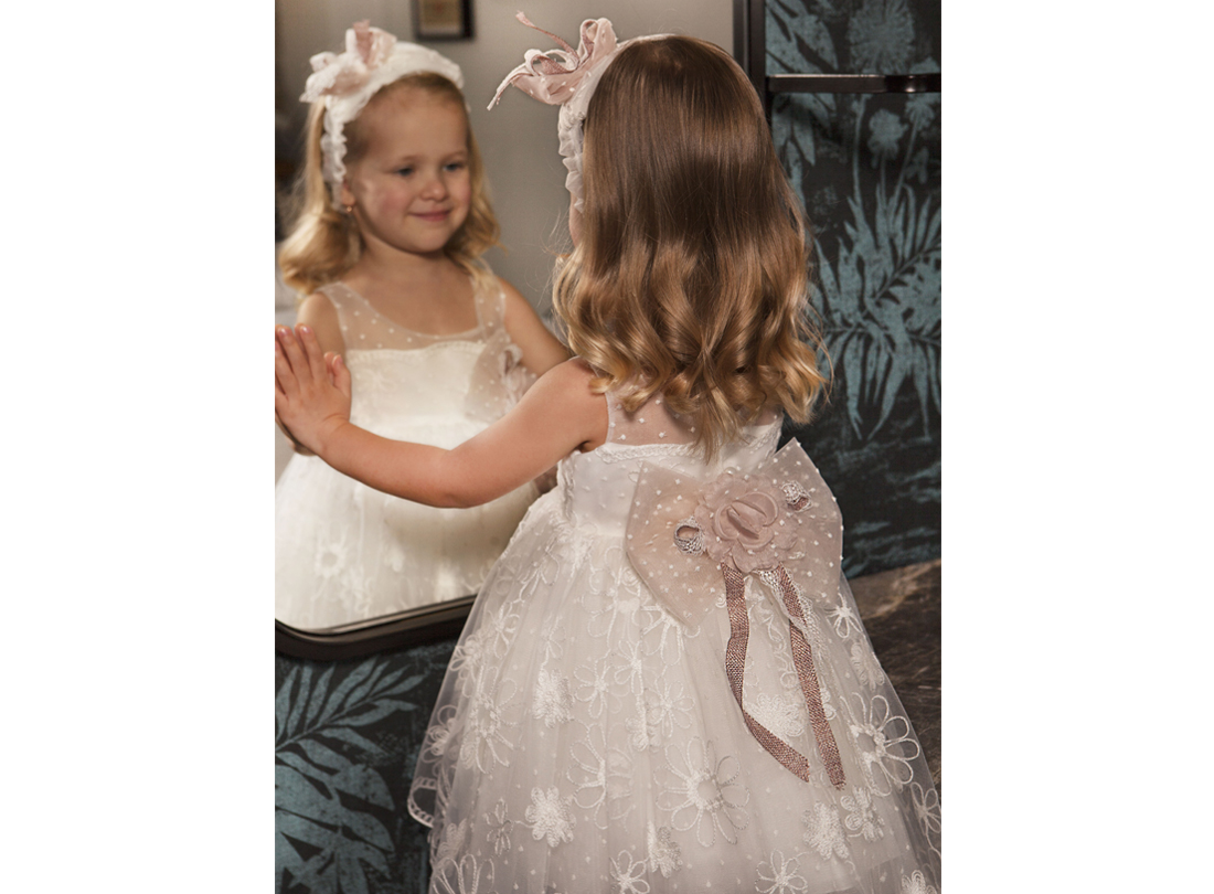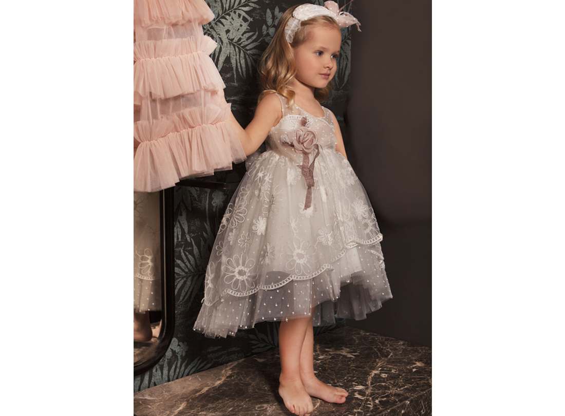 Ρομαντικό ασύμμετρο φόρεμα απο ανάλαφρη γαλλική δαντέλα που σχηματίζει λουλούδια.Στη μέση είναι διακοσμημένο με χειροποίητο λουλούδι σε απόχρωση σάπιο μήλο. Εσωτερικά ειναι επενδεδυμένο με 100% βαμβακερή φόδρα.