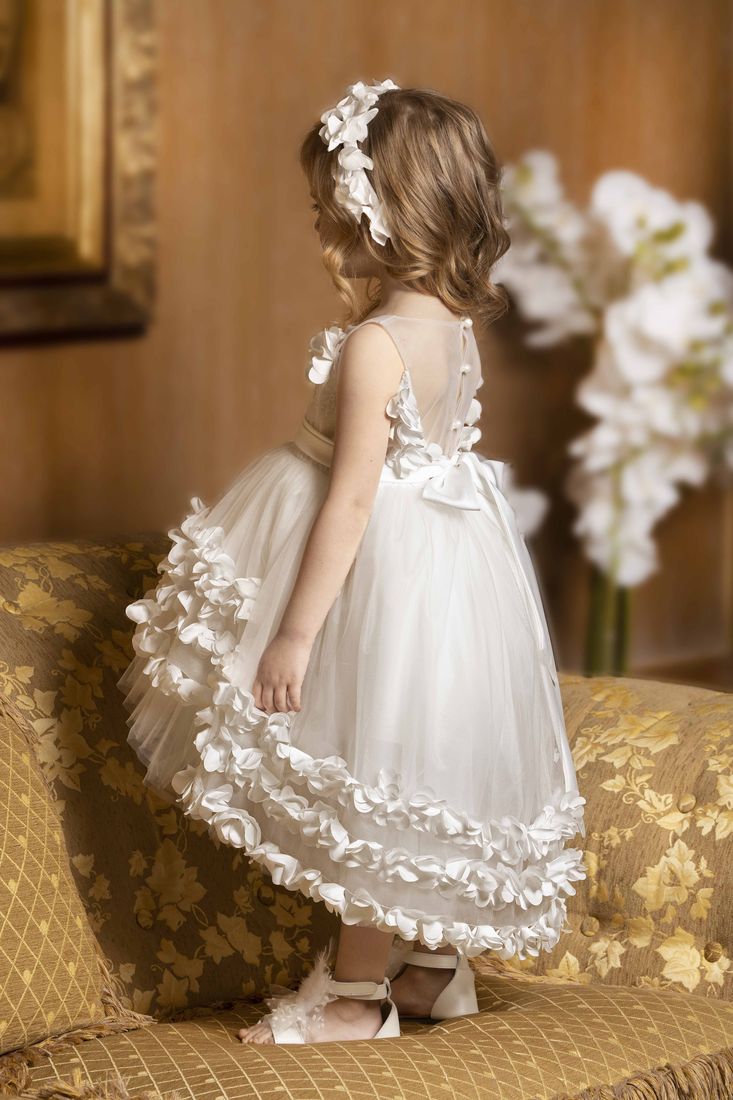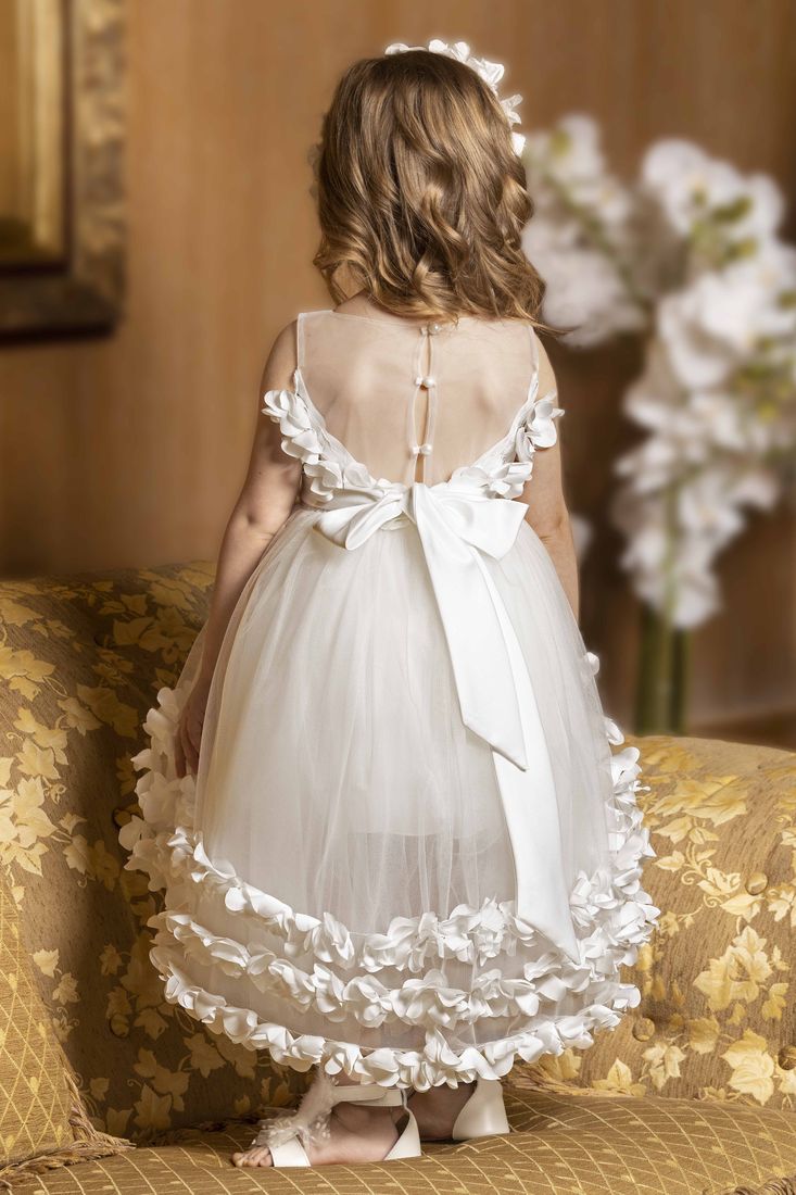 Ρομαντικό ασύμμετρο φόρεμα από λουλουδάτη δαντέλα. Διακοσμημένο στη μέση με σατέν ζώνη . Η λουλουδάτη ουρά προσδίδει μια εκλεπτυσμένη αίσθηση και είναι ιδανικό για τις πιο ιδιαίτερες στιγμές της μικρής σας. Το εσωτερικό του είναι επενδυμένο με φόδρα 100% βαμβακερή.