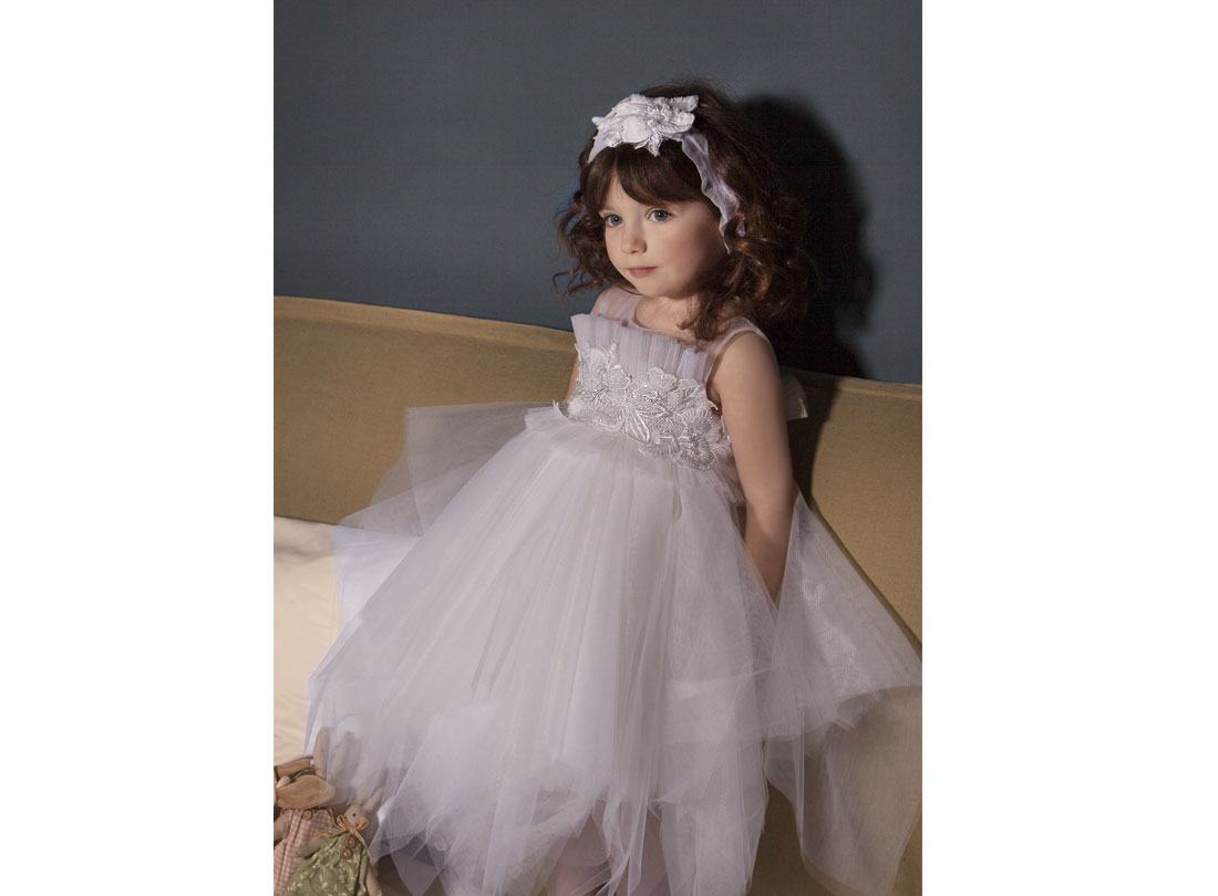 Εντυπωσιακό τούλινο φόρεμα με ιδιαίτερο μπούστο. Πρόκειται για ένα μοναδικό φόρεμα με σχέδιο απο συσσωρευμένο τούλι στο μπούστο και κεντημένες πέρλες και παγιέτες που δημιουργούν τρισδιάστατη αίσθηση. Εσωτερικά είναι επενδεδυμένο με 100% βαμβακερή φόδρα.