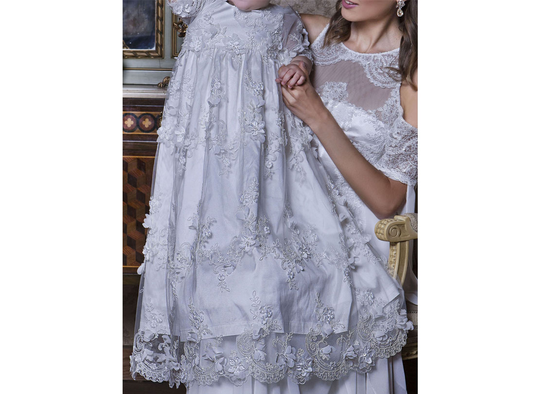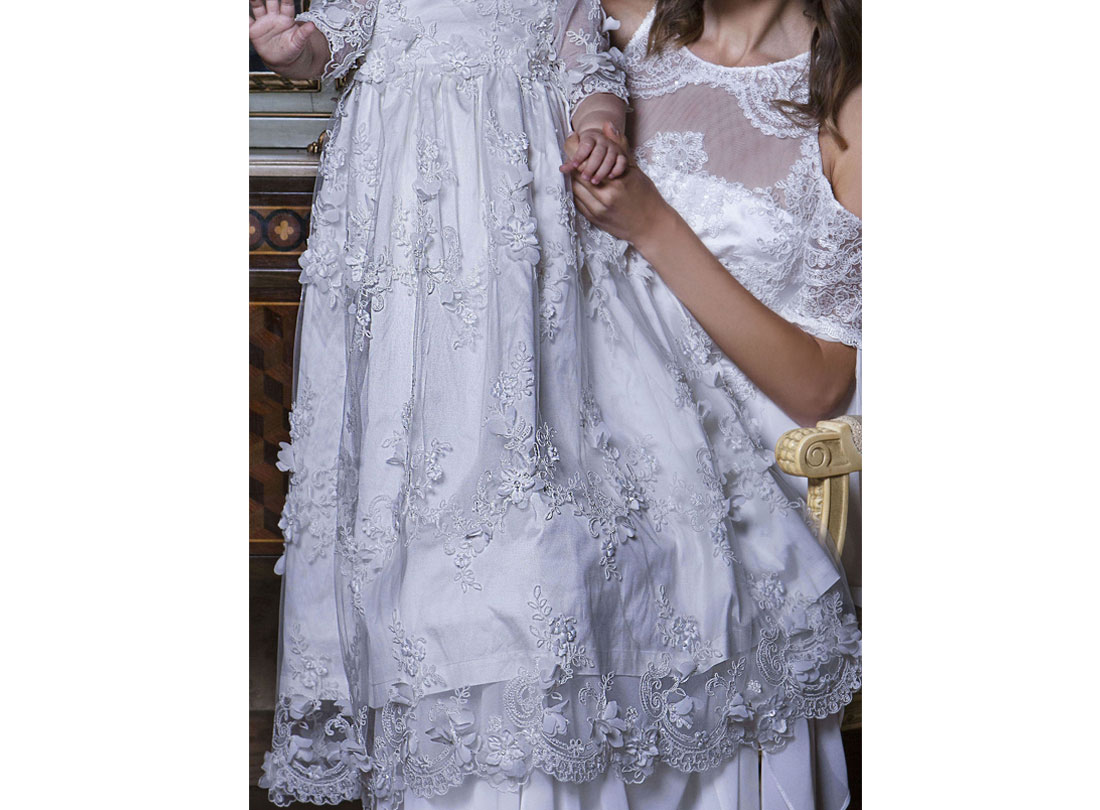 Εντυπωσιακό φόρεμα με μανίκι ¾ δημιουργημένο απο μοναδικό μεταξωτό ύφασμα. Είναι διακοσμημένο με κεντητή δαντέλα με πέρλες και παγιέτες προσδίδοντας μια τρισδιάστατη αίσθηση. Πρόκειται για ένα φόρεμα δημιουργημένο για γούστα υψηλής αισθητικής. Το φόρεμα έχει 100% βαμβακερή φόδρα για υποαλλεργική υφή.